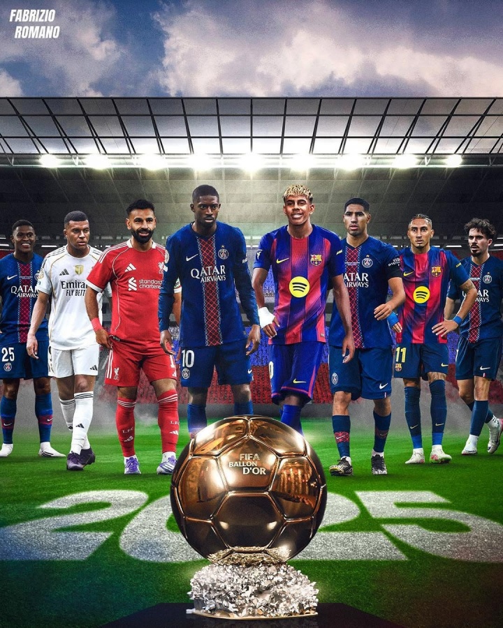 亚马尔(巴萨)、克瓦拉茨赫利亚(巴黎)、凯恩(拜仁)、范迪克(利物浦)、劳塔罗(国米)